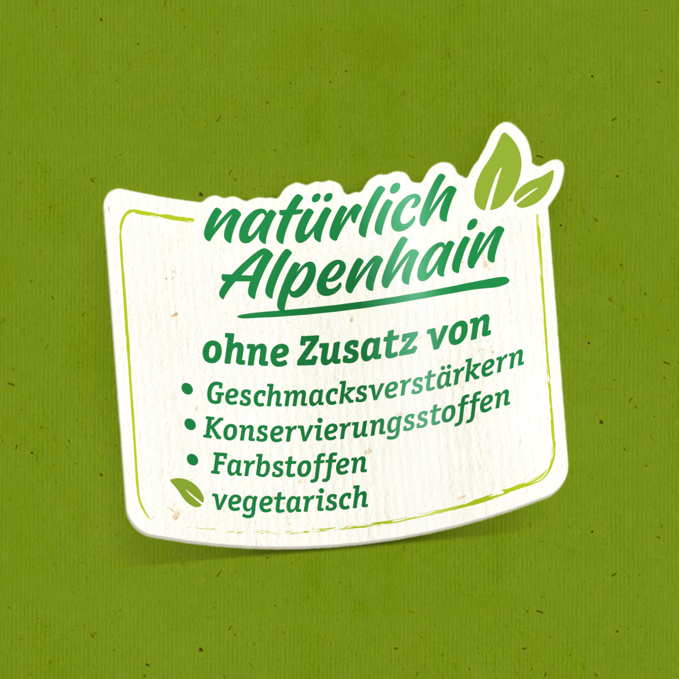 Haben Sie sich beim Genießen unserer Käsespezialitäten schon einmal gefragt, was hinter dem Siegel „natürlich Alpenhain" steckt? Mehr als nur ein Aufdruck auf der Verpackung erzählt es die Geschichte von regionaler Milch aus Familienbetrieben über schonende Herstellungsverfahren bis hin zu unserem Engagement für Nachhaltigkeit. Hier erfahren Sie, wie bei uns Genuss, Qualität und Verantwortung Hand in Hand gehen.