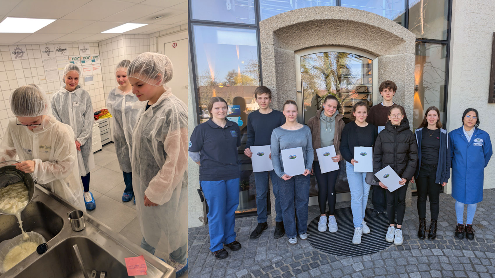 Am Nachmittag wurde es dann praktisch: Im Labor und in der Produktion konnten die jungen Schüler selbst mit anpacken. Die Mädchen führten zusammen mit Melanie Kugelmann, Ausbildnerin Milchtechnologen, spannende Versuche mit Käse und Butter durch und stellten schnell fest, wie sensibel manche Prozesse auf kleinste Veränderungen reagieren. Die Jungs wagten sich gemeinsam mit Anna Fürfanger, Ausbildnerin Milchwirtschaftliche Laboranten, an erste Laboranalysen und waren fasziniert von den Methoden und den spannenden Einblicken in die Laborarbeit.
