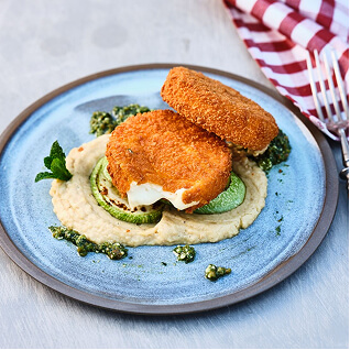 Kein anderes Produkt von Alpenhain vereint unsere höchsten Ansprüche an Qualität und Handwerkskunst so perfekt wie unser Back-Camembert. 2020 feierte er seinen 40-jährigen Geburtstag. In die Jahre gekommen ist unser Back-Camembert aber noch lange nicht. Inmitten unserer neuen Kreationen, den "jungen Wilden", ist er eine verlässliche Konstante und wir sind überzeugt, dass sein Genuss für Käseliebhaber aller Generationen auch noch weitere 40 Jahre ein Erlebnis sein wird. Unser Alpenhain Back-Camembert ist vorgebacken und paniert und kommt komplett ohne Aromen, Geschmacksverstärker oder Zusatzstoffe aus - wozu auch, wenn doch beste bayrische Milch und leidenschaftliche Handarbeit aufeinandertreffen. Egal ob unsere Camembert gebacken, in der Pfanne oder in der Heißluftfritteuse zubereitet wird: Im Handumdrehen haben Sie eine leckere Mahlzeit mit krosser Panade auf dem Tisch. Als Klassiker in den besten Jahren ist unser Back-Camembert immer die erste Wahl. Er macht bei einem festlichen Mahl mit der Familie eine ebenso gute Figur, wie in einer entspannten Mittagspause mit Kollegen. In Verbindung mit den feinen Wild-Preiselbeeren erlebt man eine unvergleichliche Aromenhochzeit.