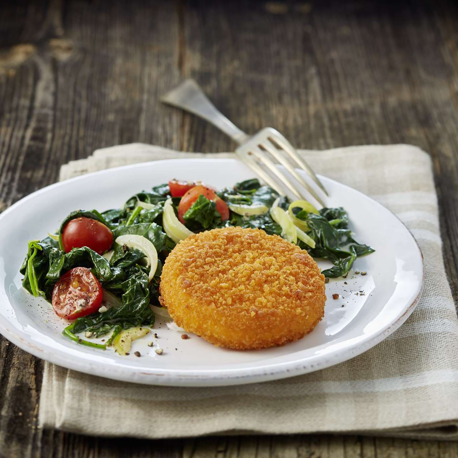 Fein-rahmiger Camembert aus frischer Alpenmilch in einer knusprigen Panade.