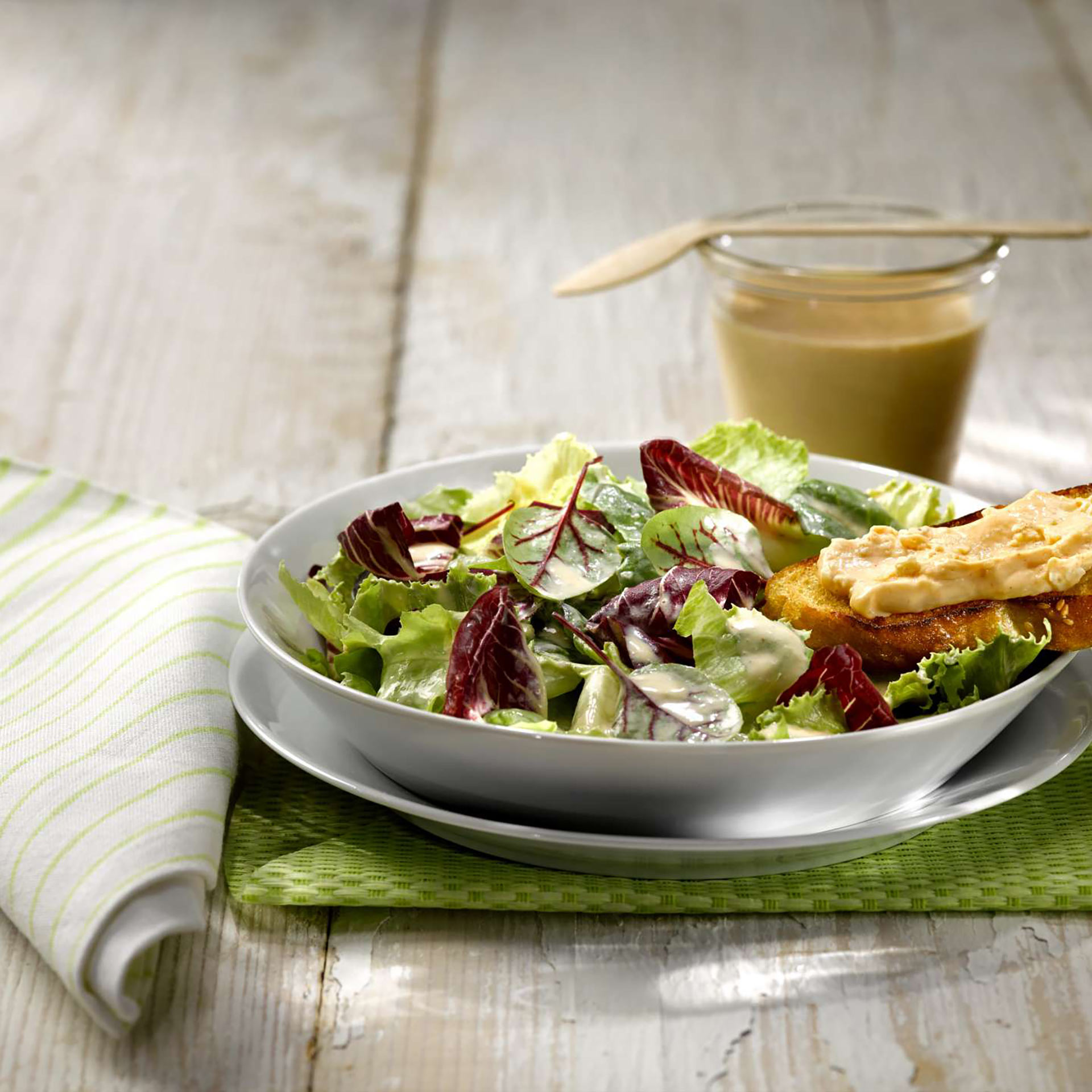Unmittelbar vor dem Anrichten und Servieren das Dressing hinzugeben.