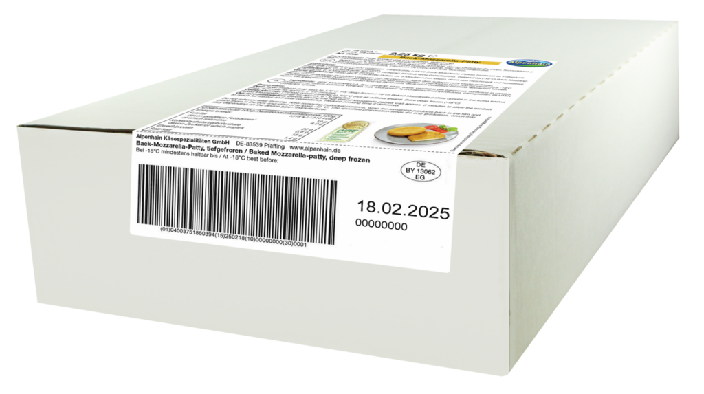 Zart-schmelzender Mozzarella, umhüllt von einer würzigen Kräuterpanade. Das Alpenhain Back-Mozzarella Patty ist die ideale vegetarische Alternative zu traditionellen Fleisch-Pattys. Ob in Burgern, Bowls, Wraps oder als raffinierte Beilage – dieses Patty sorgt für abwechslungsreichen Genuss und ist ein köstliches Highlight auf jeder Speisekarte.